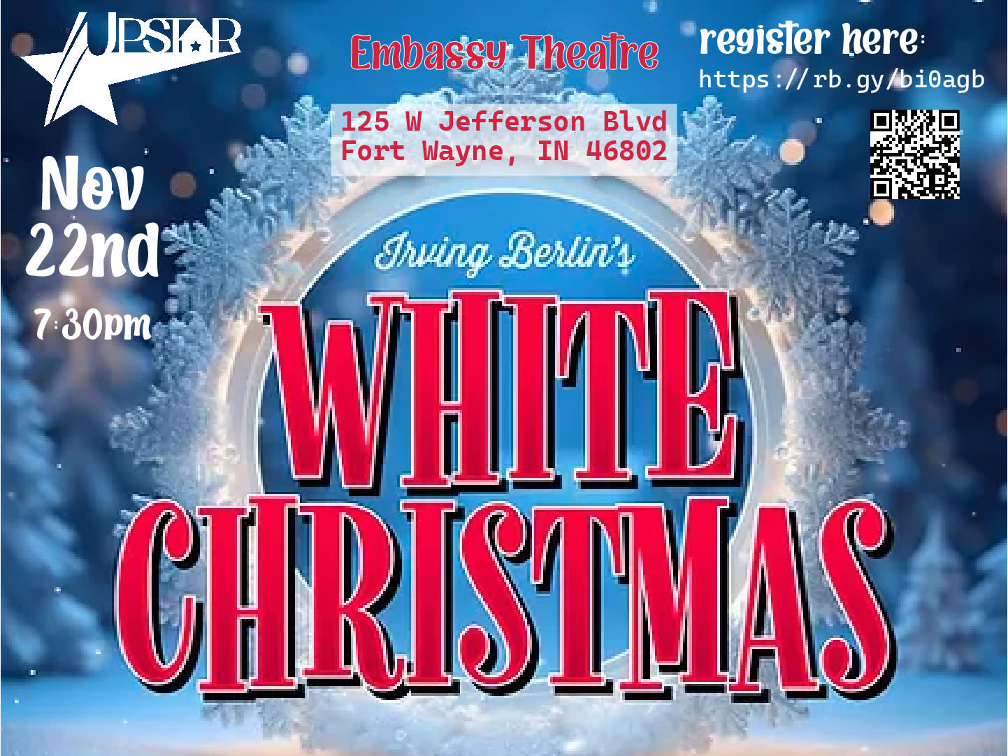 As an association benefit, UPSTAR members may register for two free tickets to the Fort Wayne Civic Theatre's presentation of Irving Berlin’s White Christmas. This year, due to the renovation of the Arts United Center, the performance will be a public event held at the Embassy Theatre.